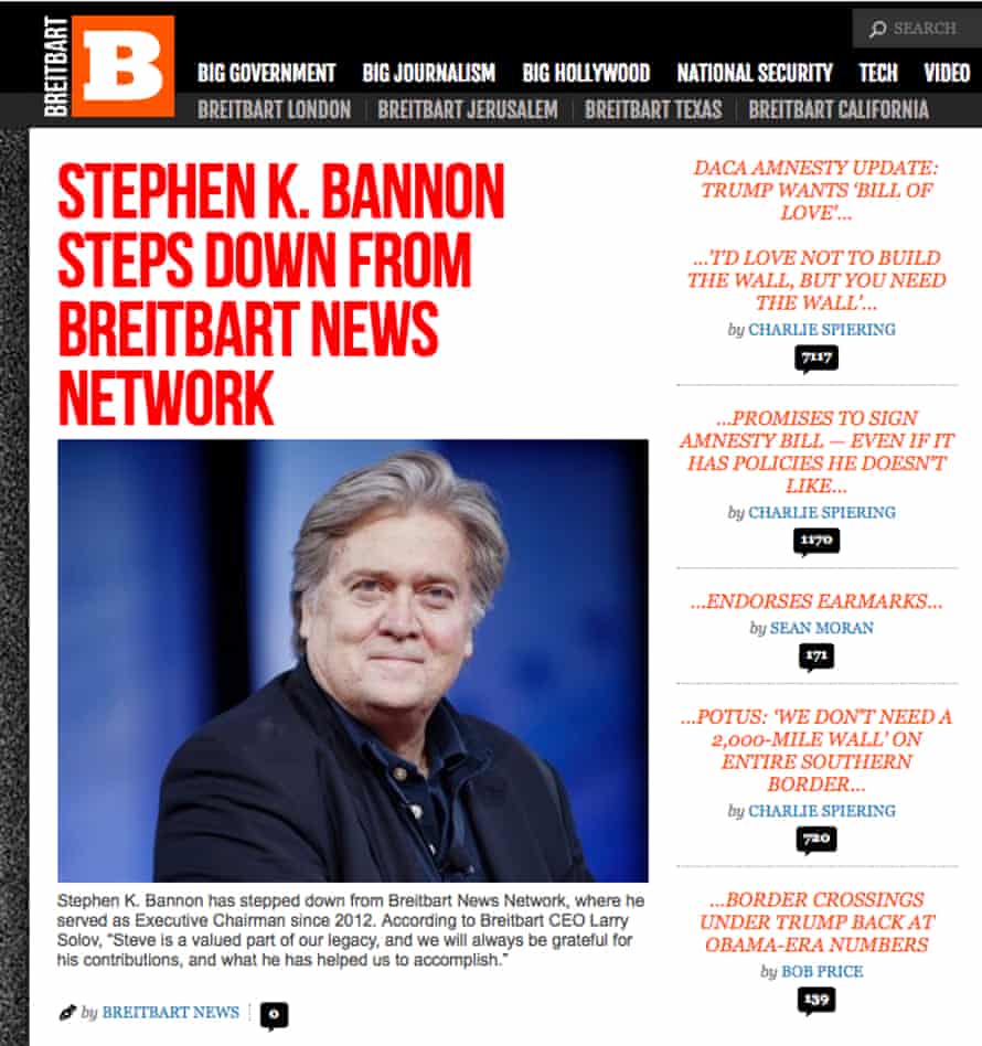 Steve Bannon Leaves Breitbart After Expressing Regret Over Trump Remarks Steve Bannon The Guardian